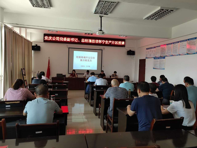 9月7日下午,安慶公司黨委副書記、總經(jīng)理王中明、監(jiān)事會(huì)主席余雙友、黨辦主任楊玲、黨委秘書李春梅等同志一行來懷寧片區(qū),給懷寧片區(qū)全體在崗黨員、科室負(fù)責(zé)人、領(lǐng)導(dǎo)班子成員上了一堂生動(dòng)的黨課。