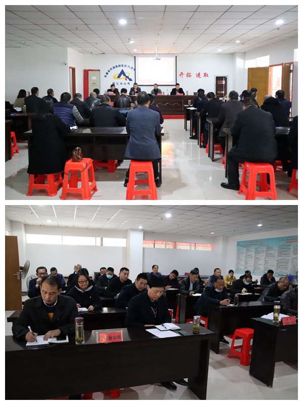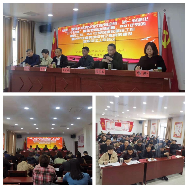 2021年3月23日下午,公司在望江分公司合并召開望江和懷寧兩片區(qū)四個單位領導班子成員及黨員代表參加的黨史學習教育動員、新一輪深化“三個以案”警示教育部署、2021年黨的建設工作、2021年黨風廉政建設工作暨2020年度黨組織書記抓黨的建設述職評議工作會議。公司領導王中明、馮定春、余雙友出席了會議。