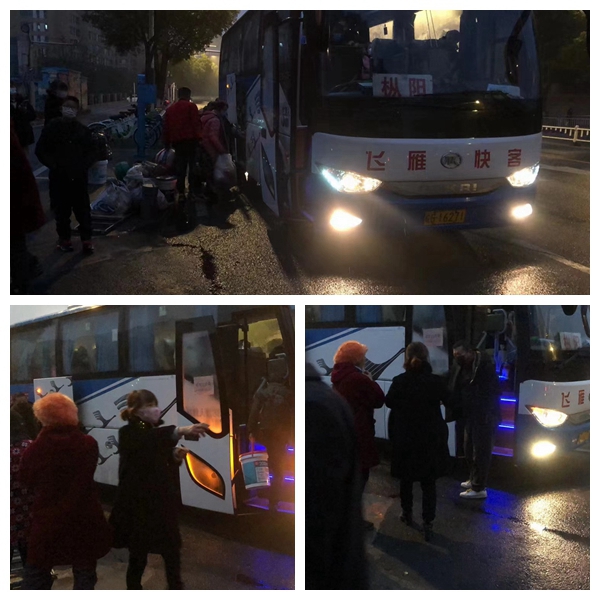 近日,獲悉義烏、常州有批量旅客要返鄉(xiāng)過年,分公司旅游車辦公室及時聯(lián)系對接。穩(wěn)妥安排車輛和駕駛?cè)藛T,合理規(guī)劃行程, 本月11、12日,分別將兩地近百名返鄉(xiāng)旅客平安順利地接回到老家樅陽。老家的車、故鄉(xiāng)的人,周到溫馨貼心的一站式服務(wù),優(yōu)質(zhì)、高效、專業(yè)的工作素質(zhì),贏得了返鄉(xiāng)旅客的一致好評。